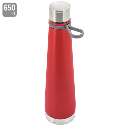 Botella de acero inoxidable «Disen», en acabado metalizado (Plata), o con cuerpo esmaltado en color Blanco, Negro, Rojo, Verde y Azul. Con diseño innovador y sofisticado. Práctico tirador de silicona. Capacidad 650 ml. Incluye caja. Para mantener su producto en óptimas condiciones de higiene y alargar su vida útil, es recomendable seguir las instrucciones de limpieza previas a su primer uso. Además de realizar una correcta limpieza después de cada uso, aconsejamos mantener completamente seco y aireado el interior del producto antes de su almacenaje.