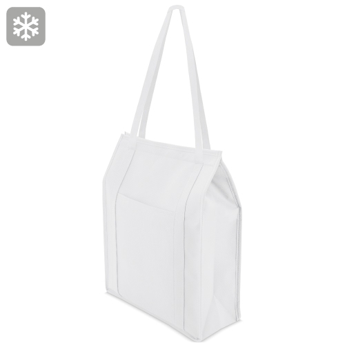 Bolsa de doble asa larga, realizado en Non Woven con cierre de velcro, einterior de material térmico perfecto para preservar el frío. En su cara delantera presenta un bolsillo de gran tamaño. Medida asa 28,5 cmCapacidad para 3 botellas.